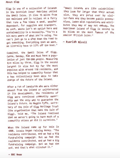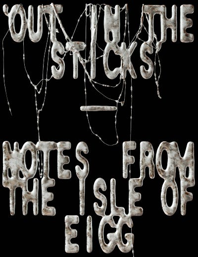 This piece was written between 29th March - 5 April on the Isle of Eigg, Scotland, during the author's artist residency at Sweeney's Bothy.