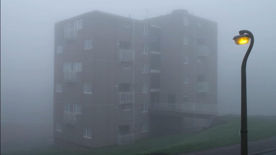 In Joseph's psycho-geographical retracing of Ballybraigh, a dialogue between location and personal memory coalesces present and past experience into a singular uncanny event. In the third episode, this bilateral experience of spatial memory reaches a climatic interchange when Joseph returns to The Towers – the boys’ home where he was left, the site of his trauma. The episode opens with a premonition, with Meadows using VHS footage to recollect the moment that the young, visibly disquieted Joseph was first taken to the home. Meadows then cuts back to the present, with Joseph looking at a photograph of his son and then deciding that ‘he might go into town and see the old sites’. Thus, prompted by and engaging with the returning spectre of the past, Joseph chooses to return to the shadowy outposts, where the stain of place never ceases.