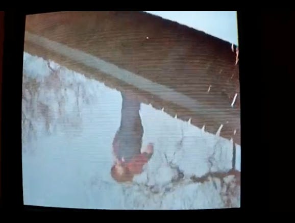 Nearly a decade after both Don’t Look Now and Lonely Water, Absent Parents (1982) was a 40-second public information film that was correlative to both. Absent Parents reconfigures the internalized process responsibility of the child’s play around water back on to the parents. It opens with the seemingly innocuous scene, the ambience of children playing in day care. Here a group of children are playing safe and supervised indoors on a climbing structure. But, the composition and tonality of the work quickly transmogrifies into the ghostly familiar landscape of the public information film. In a haunting evocation to the opening scene of Roeg’s film, Absent Parents initially safe depiction of supervised play indoors is quickly juxtaposed with shots of a child playing outside on the edge of a small wooden bridge that crosses a shallow creek.
