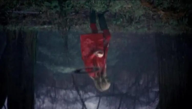 This scene is repeated in differing yet all-to-similar scenarios in Grant’s triptych of watery death with “the creepiness here resid[ing] in the film’s construction of a universe that targets children, that lures them to their deaths through the temptations the world offers” (Burke 193). This sense of ‘targeting’ that Burke refers to is elucidating in the three types of children the Spirt ‘picks off’: “the unwary, the show-off, the fool” – all of whom fail to comprehend the hazardous mundanity of every spaces. The second child to drown is the ‘unwary’, who the Spirit tells us are “who are easier still”, dangling on a branch from trying to catch a fish from a pond all on his lonesome – the inevitable happens with the branch unable to hold his weight, snapping he falls into the pond. Indeed, Burke continues in his analysis of Lonely Water, pointing out: