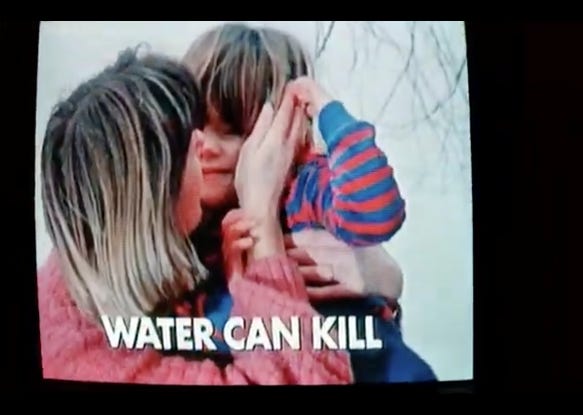 In many ways, the opening sequence of Don’t Look Now, in which an unsupervised young girl playing outside drowns whilst her parents are busy bickering inside, plays as the perfect public information film. Addresses in stark imagery one of the prominent anxieties of parent's fears tied up with the child and water, as well as their own responsibility as all-pervasive-safety-nets. Capturing one of the longstanding fixtures in COI safety concerns around children and watery places. Indeed, as Mark Sanderson elucidates: